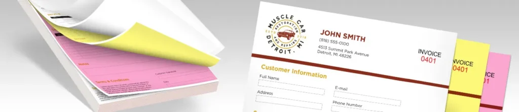 NCR Forms are an efficient way to provide multicolored copies of a single document with handwritten or typed information—order forms, packing lists, invoices, receipts, and more. Available loose or bound as pads with covers.